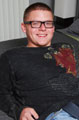 So far, he's the only guy who's ever done a shoot and really needed to keep his glasses on. On first glance, they're pretty bookish/nerdy. But then I noticed that the frames were from a very popular brand that starts with the letter O.