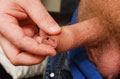 Never being one to turn down the chance to give a helping hand, I reached in and started jerking Dominic's thick uncut cock.
